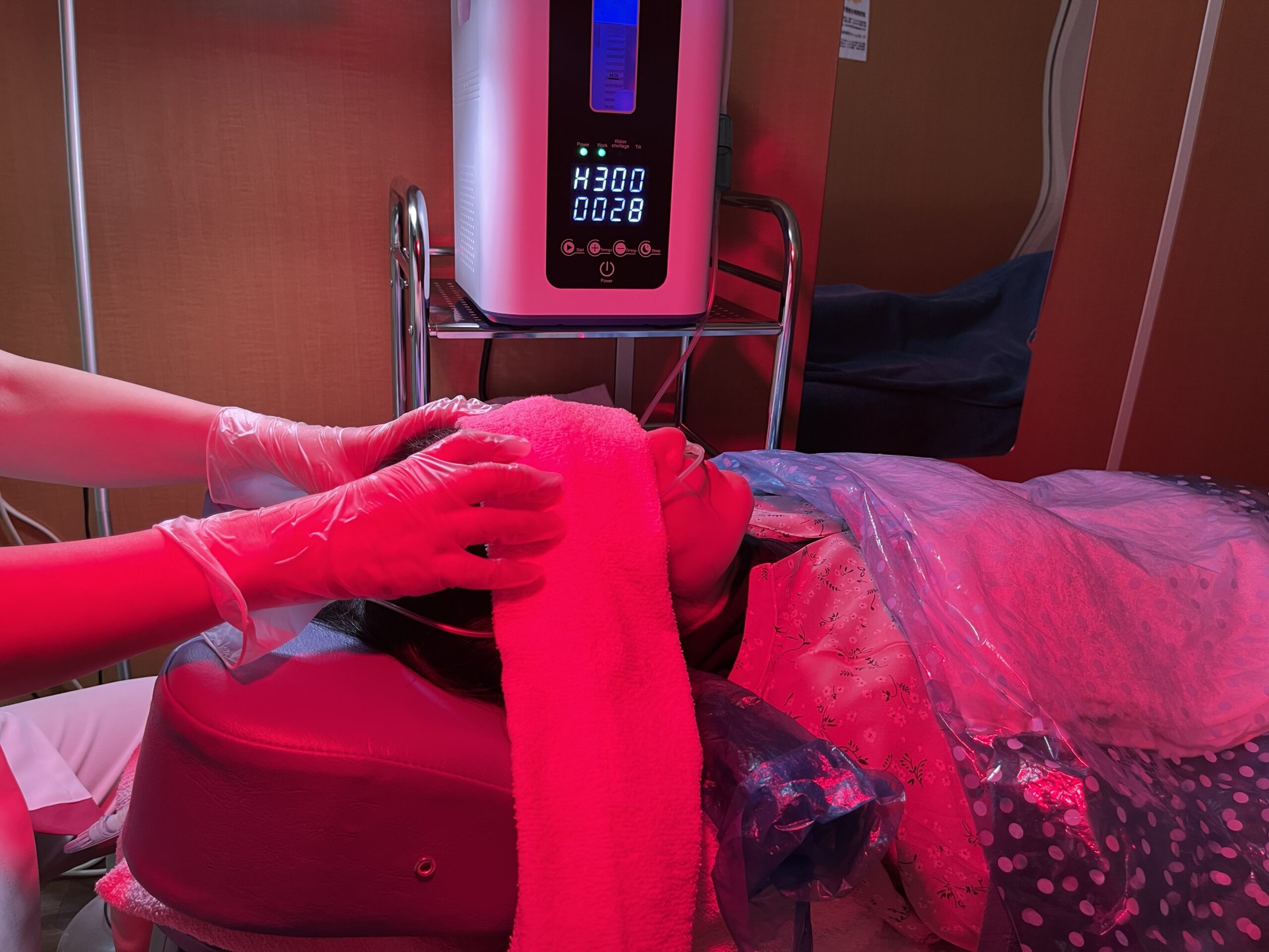 さらに、短時間の手技でも効果を高めるために、高濃度水素吸入とレッドライトセラピーという新しい科学の組み合わせを融合し、水素で体内の酸化ストレスを除去し、レッドライトで副交感神経を優位に導き、頭皮・肌・脳細胞のミトコンドリアも含めて活性化しながら、自然な眠気を引き出します。この2つの科学と手技の組み合わせを継続していくことで深い眠りにつける方が続出しています。